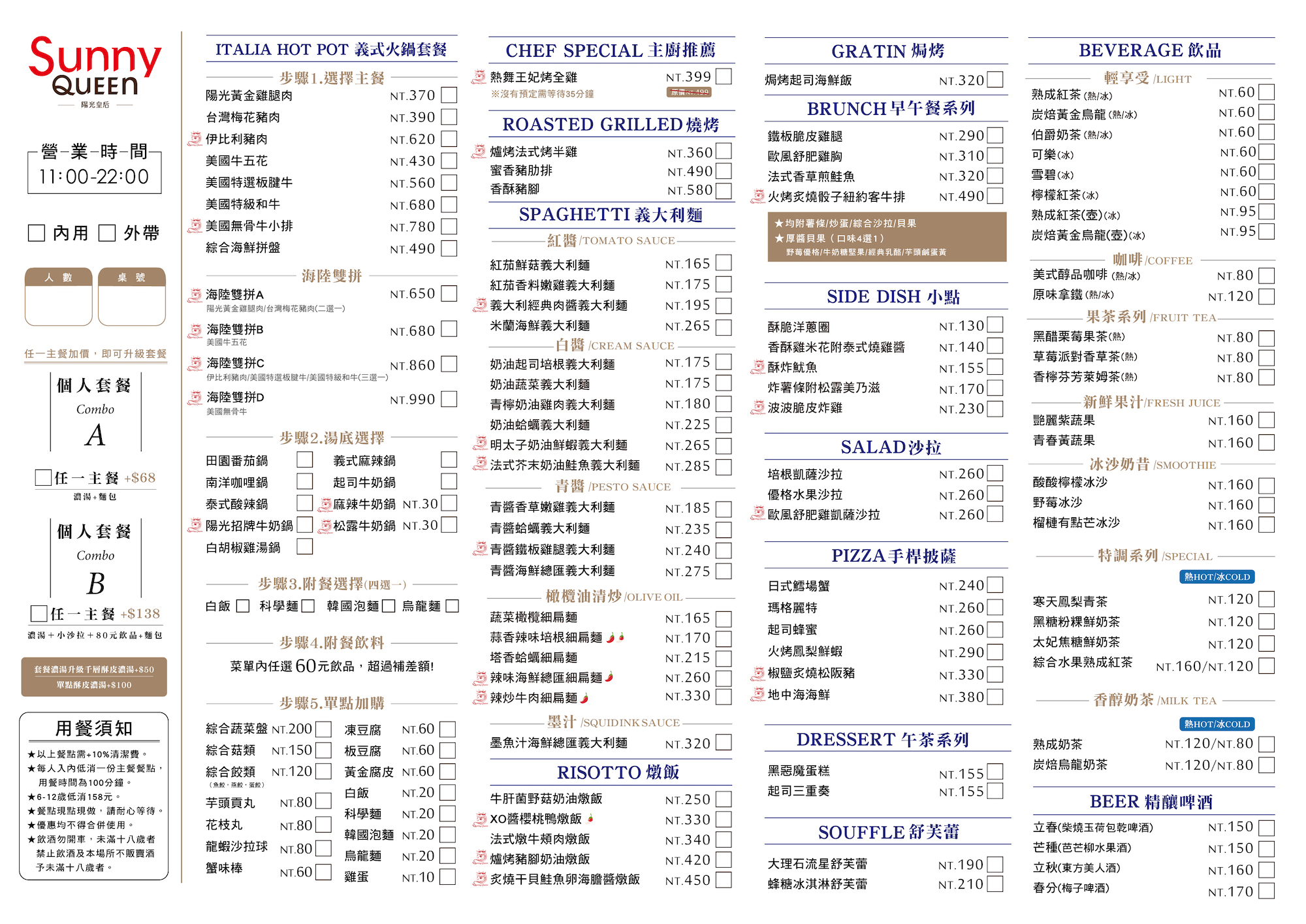 燉飯、義大利麵、義式火鍋、早午餐等等