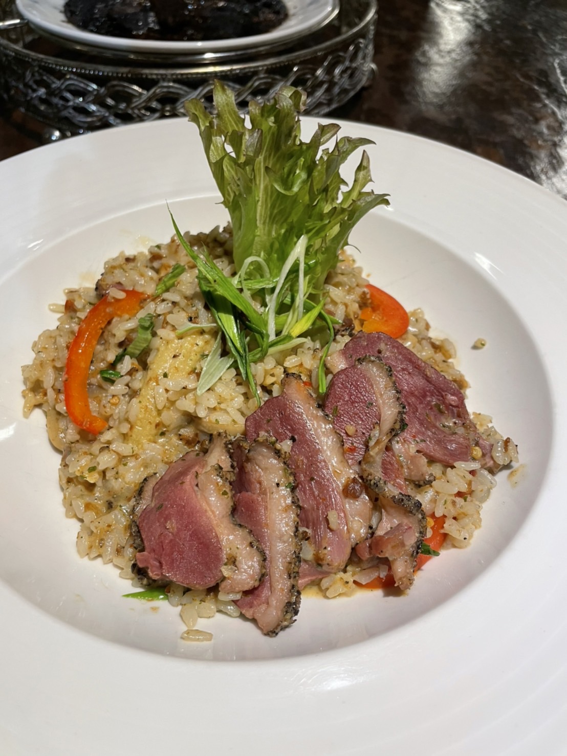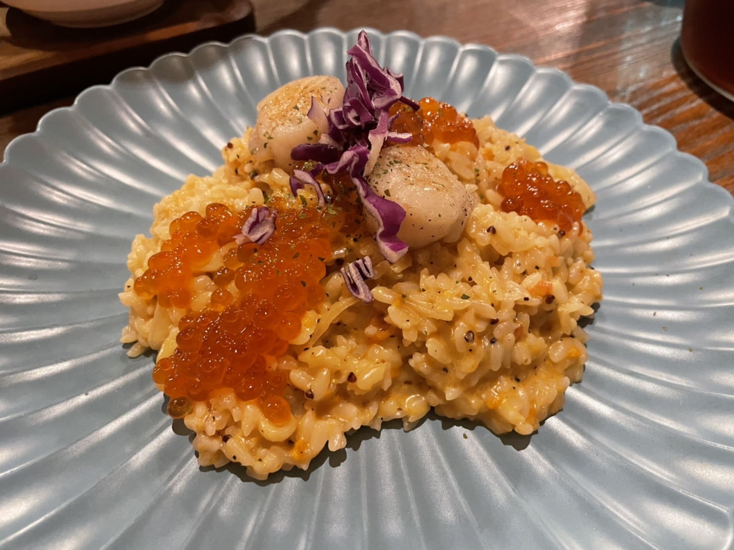 我們點了『炙燒干貝鮭魚卵海膽醬燉飯』